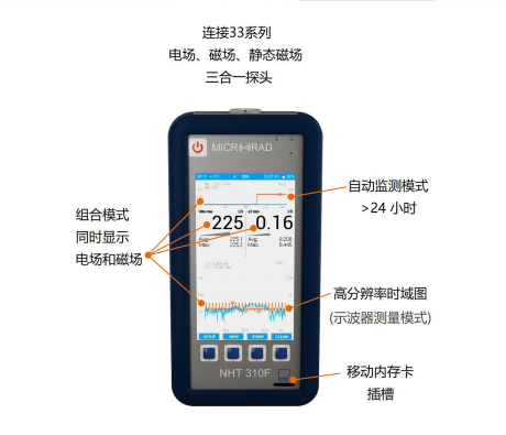 微納德 MICRORAD 專業全頻段電磁輻射測量儀套裝 PRO 3F,其測量范圍為 DC – 6.5GHz,是微納德推出的一款最新電磁輻射測量套裝,集合了最新的技術及制造工藝,并結 合高分辨率彩色觸摸屏操作界面,可實現高低頻電磁輻射測量。 PRO 3F 具備自動監測功能(數據自動采集、保存),可通過 WIFI 模塊與手機進行實時 控制及數據采集,免去線纜連接的繁瑣,并顯示在 Windows 操作系統(PC、平板電腦)和 Android 設備(智能手機)上,設備可安裝 SD 卡進行數據存儲,非常適合用于現場的高低 頻環境測量,可針對不同環境下的高低頻電磁輻射進行精確地測量,即使是在復雜的電磁輻 射環境中,仍能實現對靜態磁場(如地磁場)、電氣化鐵道(如磁懸浮列車)、高壓輸變電 系統(如發電廠、高壓線、變電站),以及電視塔、廣播電臺、雷達、運營商通信基站等各 類電磁設施的電磁輻射的綜合測量